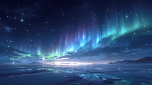7. 雪原に浮かぶオーロラの夜