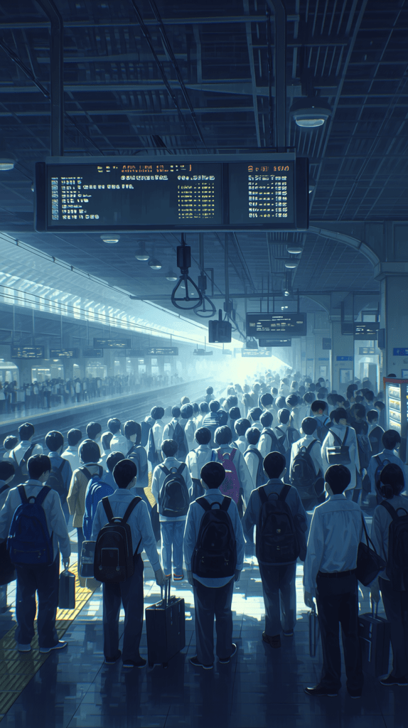 朝の駅ホームプロンプト|通勤・通学シーンの日常風景を描く