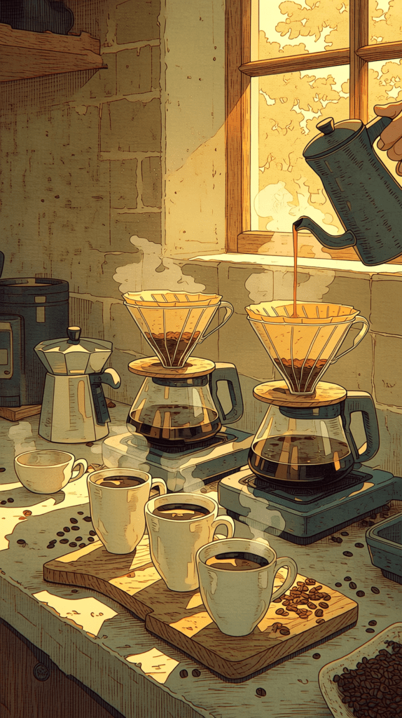 朝の台所プロンプト|コーヒーを淹れる日常風景の描き方